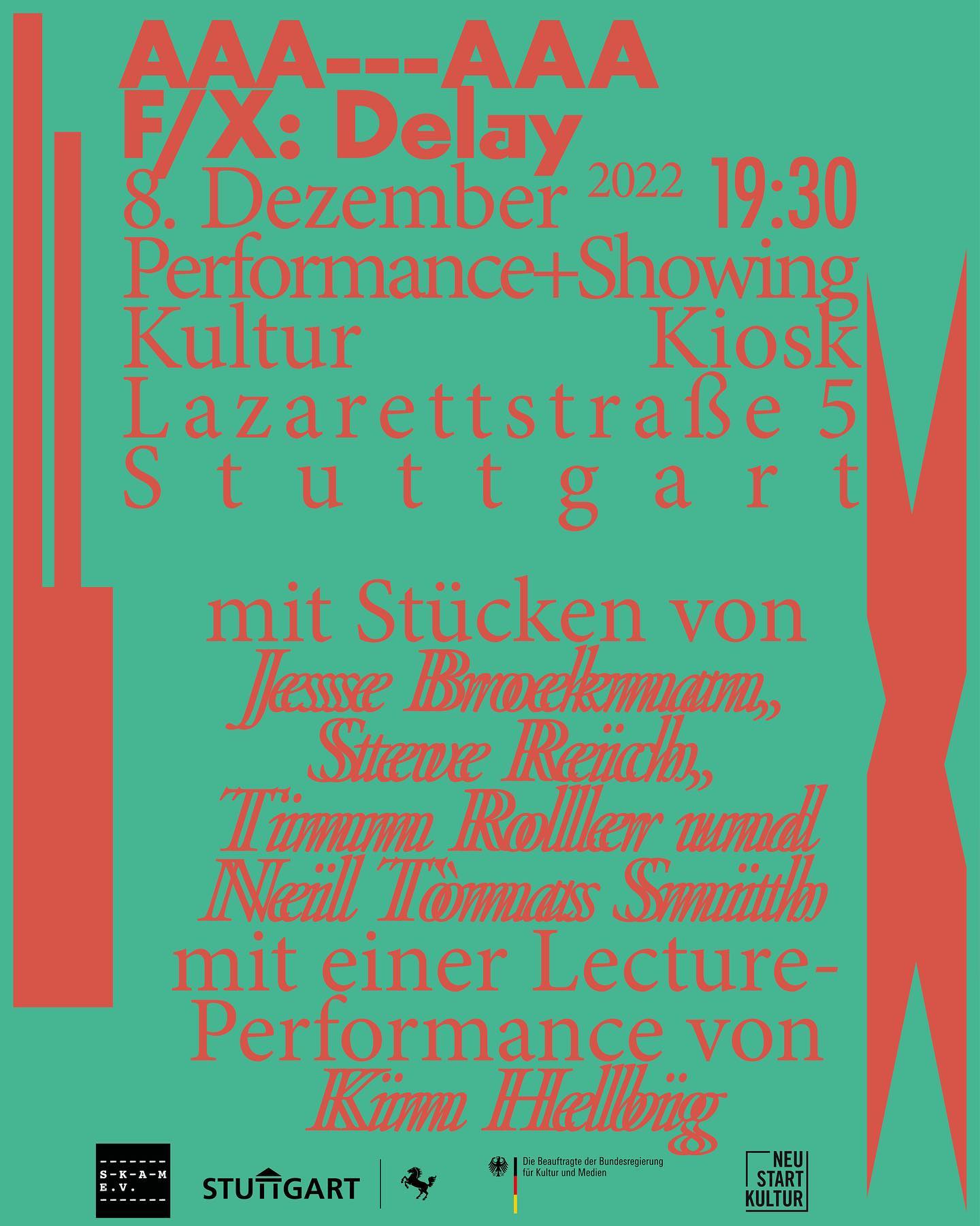 Rede-Performance 'Aus-Ein-Ander' zwischen den Stücken des Konzertabends 'Delay', Kulturkiosk Stuttgart, Dezember 2022