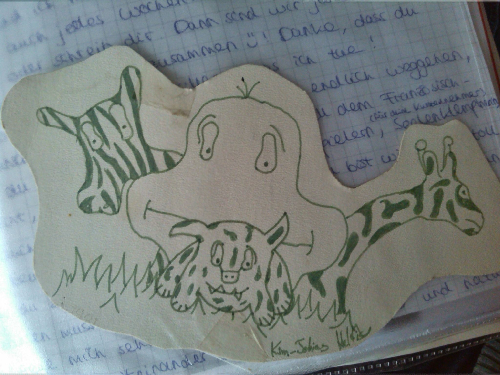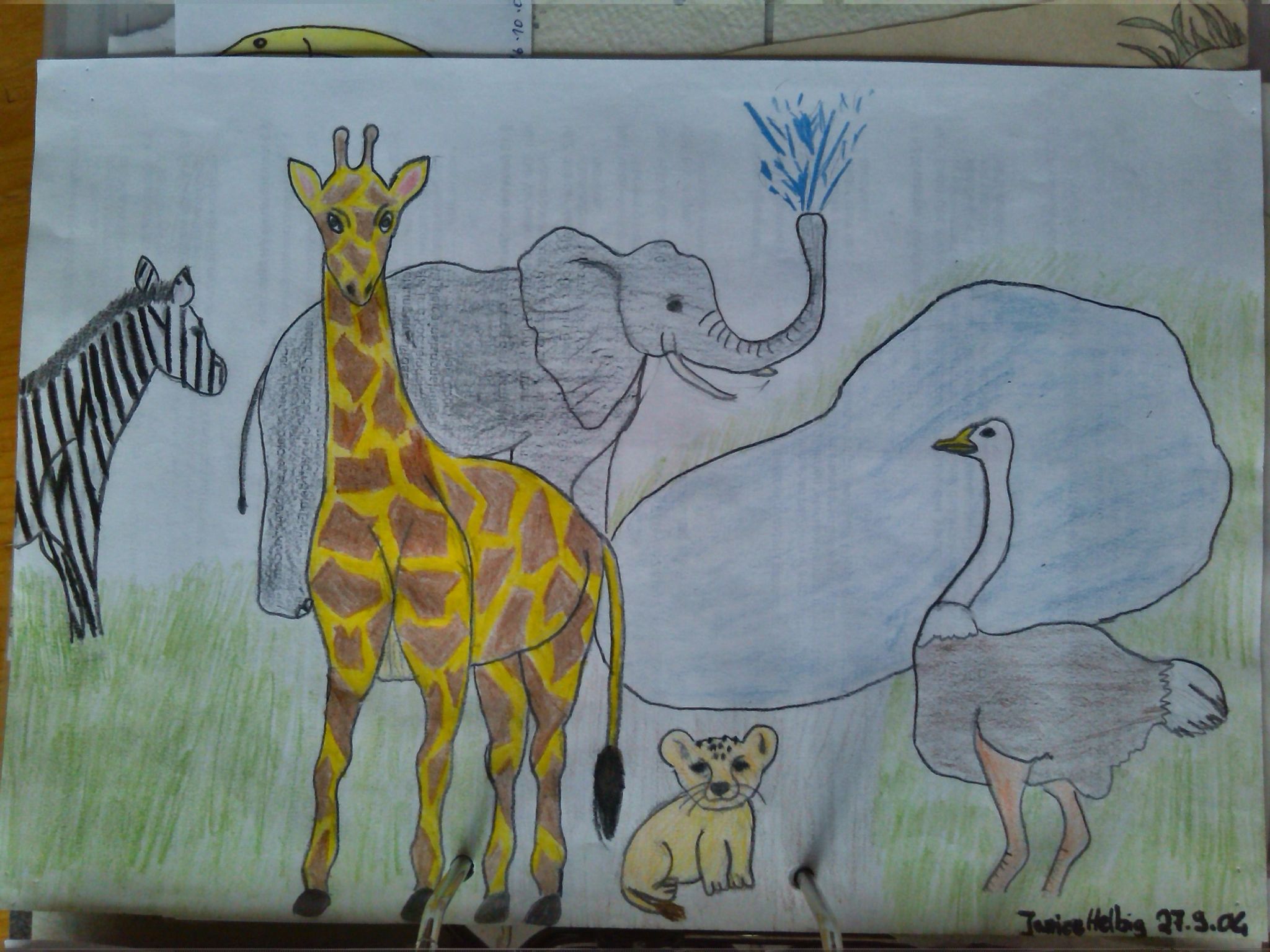 Die meisten Zeichnungen, vor allem die schönsten (Giraffe usw.), sind von Janice. :)